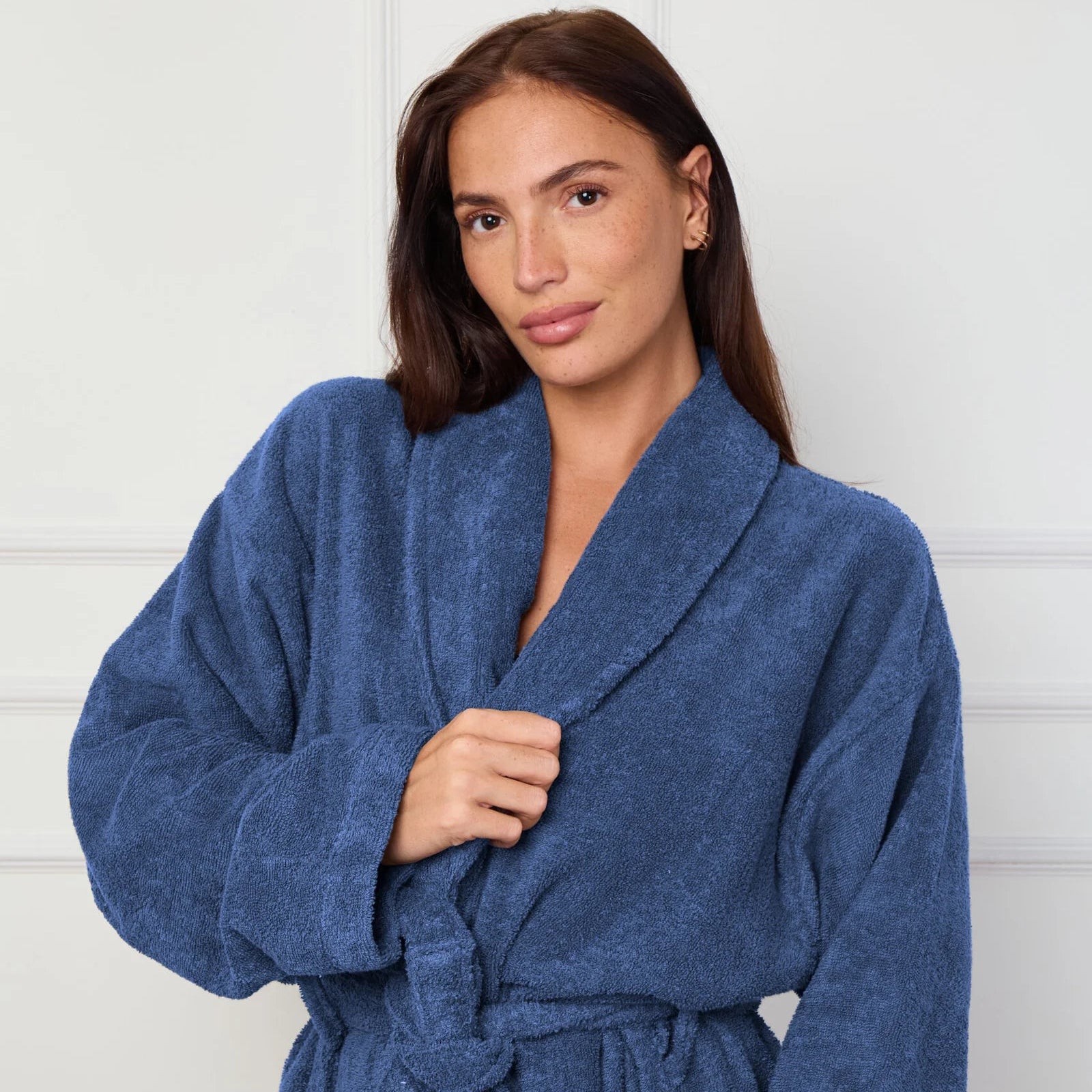 Experience everyday luxury with the Hampton Shawl Collar Bathrobe, a beautifully soft and absorbent cotton dressing gown designed for both men and women. Crafted from premium terry towelling, this plush bathrobe combines lightweight comfort with cosy warmth, perfect for relaxing after a bath, lounging at home or enjoying a spa day.