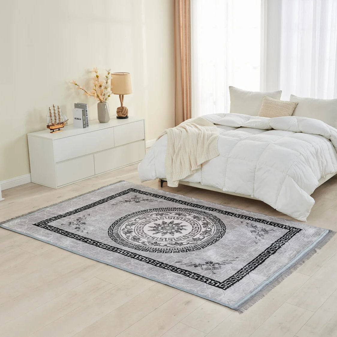 Elevate your living space with the refined elegance of the Theo Greek Rug. A timeless statement piece inspired by classic Greek artistry. Designed to bring a touch of luxury to modern homes. This rug showcases a beautifully detailed Greek key pattern that instantly enhances any room. With its striking visual appeal and soft textured feel. The Theo Greek Rug is the perfect blend of tradition, contemporary style and everyday comfort. Whether placed in a living room, bedroom or dining area. It adds a sophisticated focal point that complements both minimalist and decorative interiors.